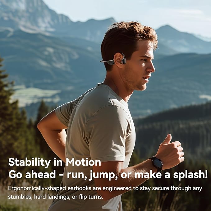 - [Fast & Stable Bluetooth 5.4 Connection]: Equipped with the latest Bluetooth 5.4 chip, these bone conduction earbuds deliver an upgraded performance, offering stronger interference resistance and enhanced connection stability for a smoother, more reliable experience. With a Bluetooth range of up to 33ft and up to 7 hours of battery life, compatible with iOS, Android, and other devices. (Note: Please use MP3 mode when swimming, Bluetooth mode is not work)