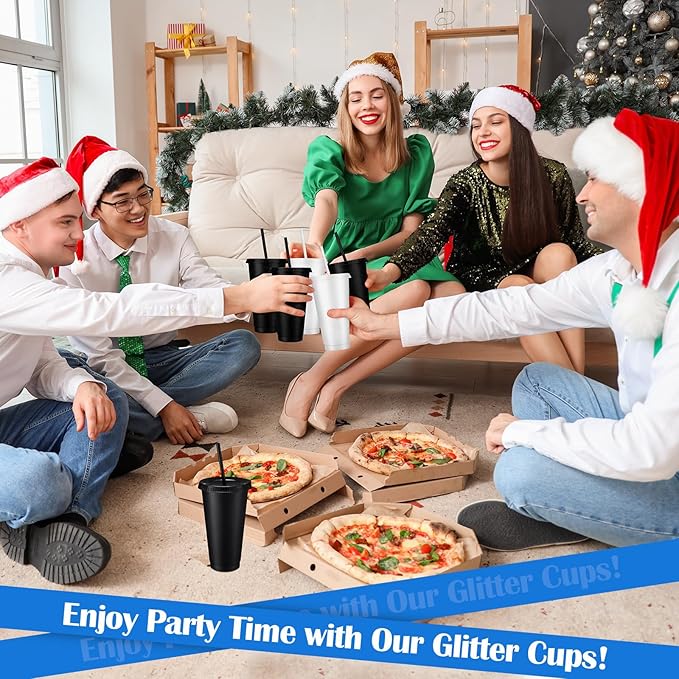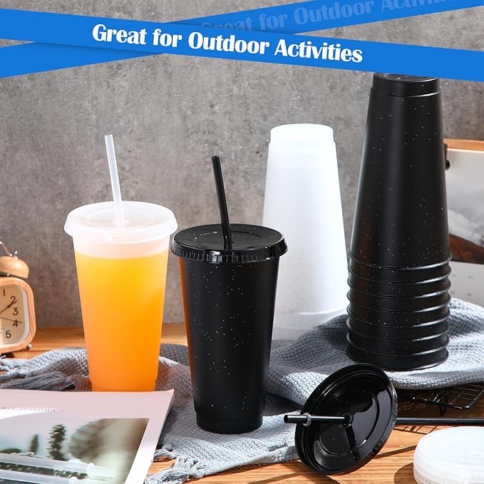 Honeydak 30 Pack Tumbler with Straw and Lid Bulk Glitter Plastic Cups Water Bottle Iced Coffee Travel Mug Reusable Party Favor Cups for Birthdays travel 24-27 oz (Black and Clear)