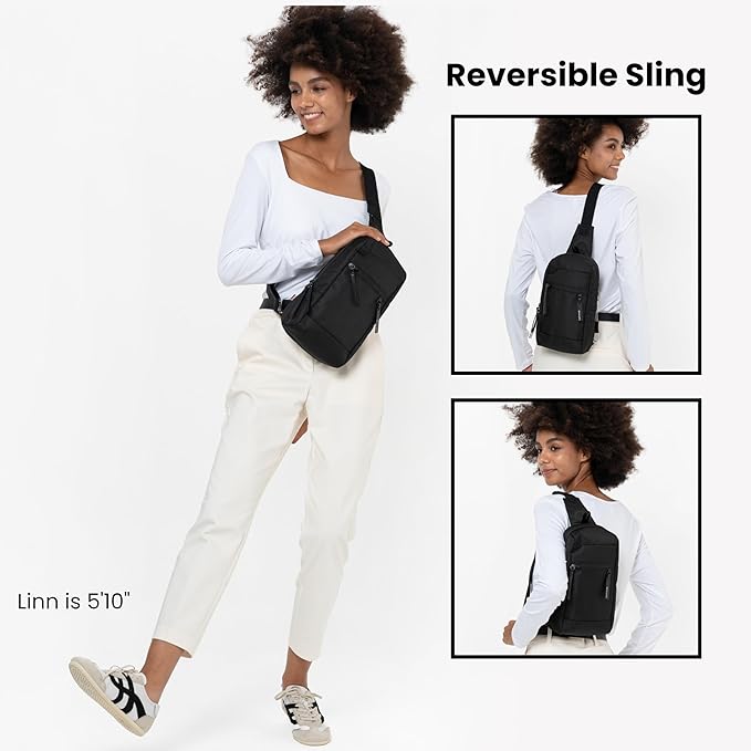Sherpani Metro, Anti Theft Sling Bag, Sling Backpack, 5L Travel Bag, Shoulder Chest Purse, Crossbody Backpack for Women, Metal Hardware, Travel Gift (Carbon)