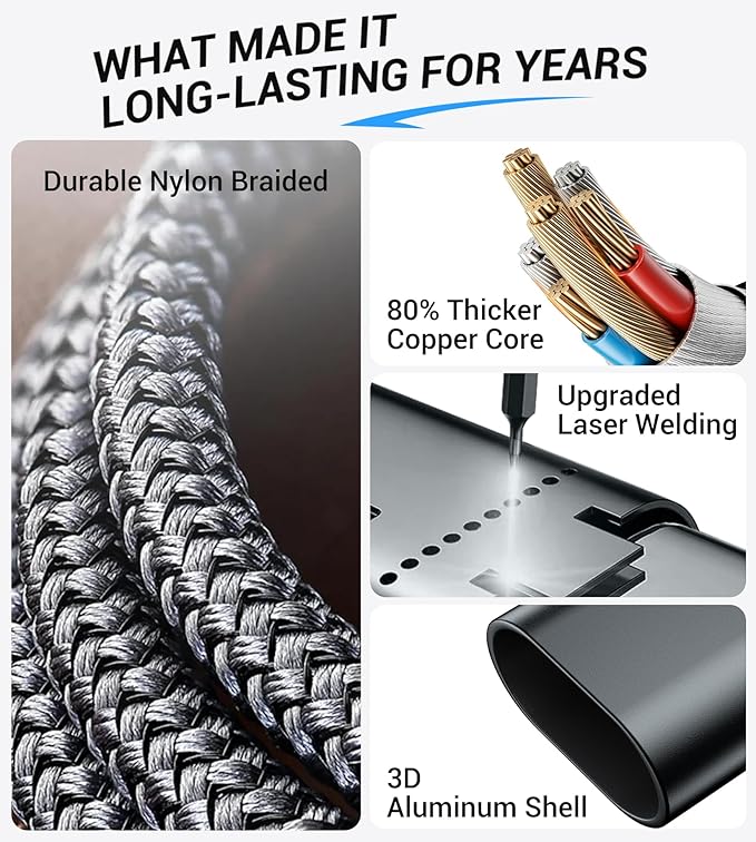 - 【High-Quality Materials】Crafted with durable nylon braid and a laser-welded 3D alloy connector, this multi-charging cable withstands 45,000+ stretch tests while offering Long-term limited warranty support for iPhone charger cord or multi-device charger replacements