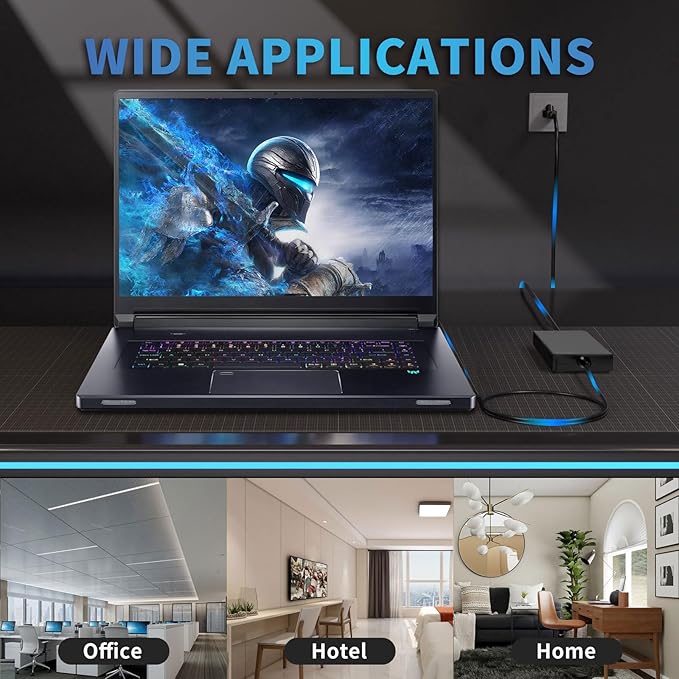 - Speed & Safe Charger for Acer Laptop: This laptop charger delivers up to 330W power output (19.5V/16.9A). It ensures rapid, secure charging for Acer Helios laptop, letting you swiftly resume work or gaming