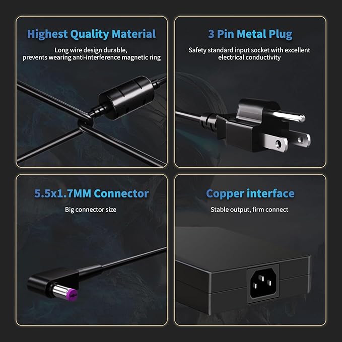 - 330W for Acer Laptop Charger Replacement: Compatible with Acer Nitro 17 16 15 series, Nitro 17 AN17-41-R7G3, AN17-41-R7GT, AN17-41-R5Y, Nitro 16 AN16-41-R7FA, AN16-41-R5KC, AN16-41-R1WE, AN16-41-R9ZH, AN16-41-R4CY, AN16-41-R62L Laptop