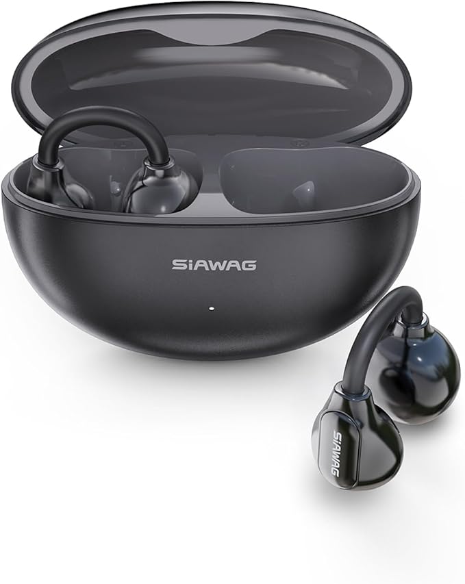- IP5 Waterproof & Dustproof: Built to withstand the elements, the SIAWAG open ear headphones are rated IP5 for waterproof and dustproof. The clip-on earphones support dual pairing function with an in-ear design, allowing for single or dual ear use. Whether you're in the rain or sweating profusely in the gym, your earphones will stay secure and perform at their best.