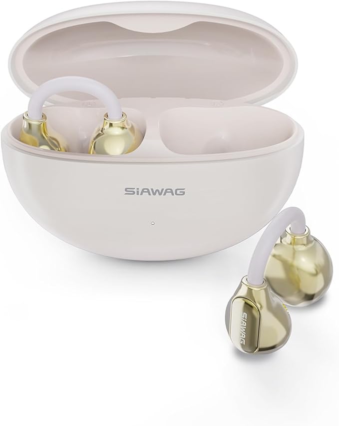 - IP5 Waterproof & Dustproof: Built to withstand the elements, the SIAWAG open ear headphones are rated IP5 for waterproof and dustproof. The clip-on earphones support dual pairing function with an in-ear design, allowing for single or dual ear use. Whether you're in the rain or sweating profusely in the gym, your earphones will stay secure and perform at their best.
