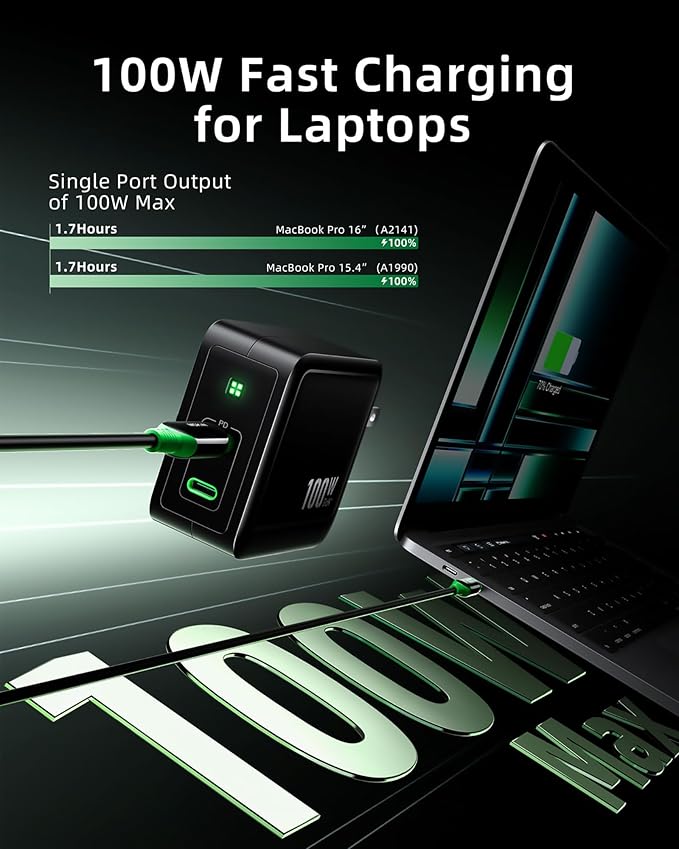 - 【Quintessential Travel Companion】:Weighing only 7.84 ounces, this USB C fast charger features an ultra-compact and lightweight design that is 22% smaller than the original 100W charger, the durable ABS shell prevents scratches and has foldable prongs