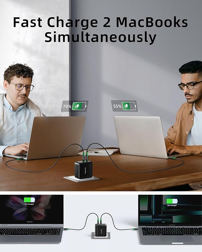 - 【High-speed Charging Experience】:With 2 USB-C ports(65W+30W, up to 100W single port), effortlessly charge your phones and notebook all from a single charger, enjoy fast and efficient charging with a maximum output of 100W. Don't worry about charging devices like phones, tablets, laptops, etc