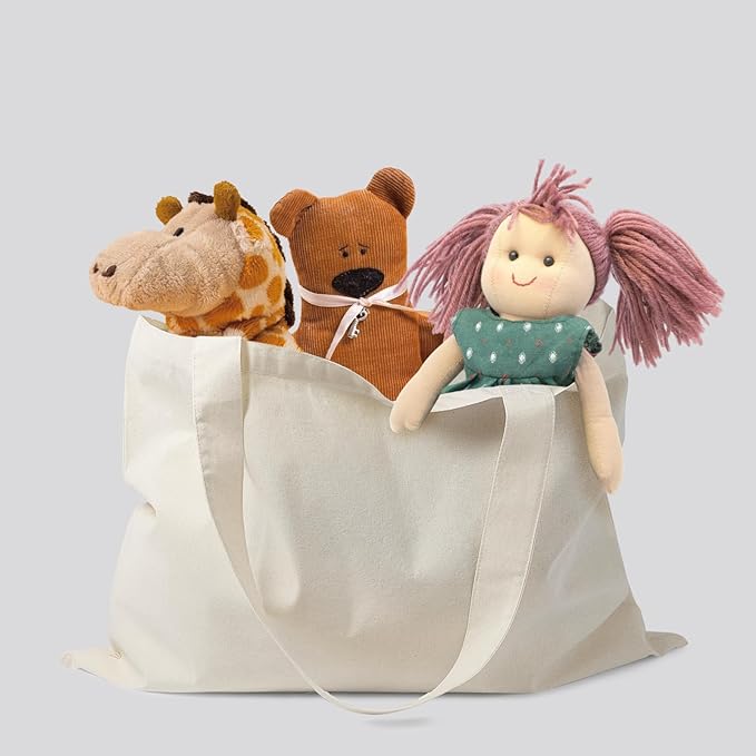 NPBAG 25 Pack 20'' X 16'' Large Natural Cotton Tote Bags, Lightweight Blank Bulk Cloth Bags with 1pc of PTFE Teflon Sheet