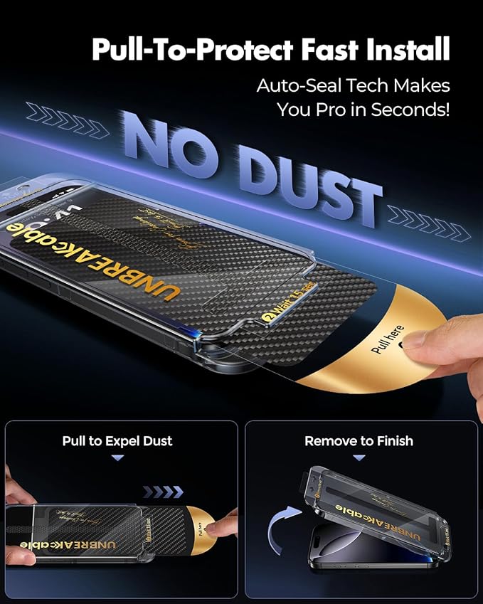 ![UNBREAKcable 3-Pack Screen Protector for iPhone 16 Pro Tempered Glass - [One-Pull Perfection] [Auto Dust-Elimination] [9H+ Hardness] [99.99% HD Clear] Full Coverage for iPhone 6.3 inch](http://myurbancarry.com/cdn/shop/files/91bYlt9_jnL._AC_SX679.jpg?v=1758926427&width=1445)