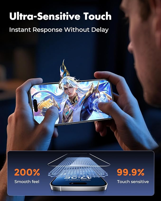 - Clarity & Sensitivity: Our ultra-thin iPhone 17 Air screen protector is 0.01 inches thick, nearly invisible, and offers 99.9% clarity. Enjoy a vibrant display with silky smooth touch sensitivity for quick, natural responses.