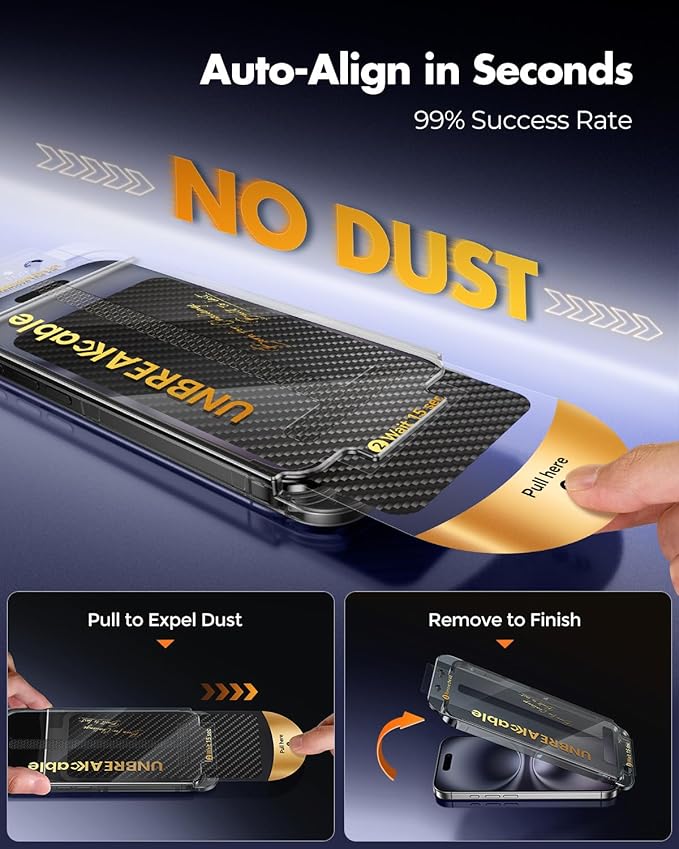 - [Dust-Free Easy Install]Thanks to our upgraded 3-step dust-free installation box, even first-time users can achieve flawless alignment in seconds. This ultra-thin film includes a sealed-edge system that blocks dust, and the smart adhesive eliminates bubbles—ensuring a smooth, stress-free install experience. (Watch the installation video before applying.)