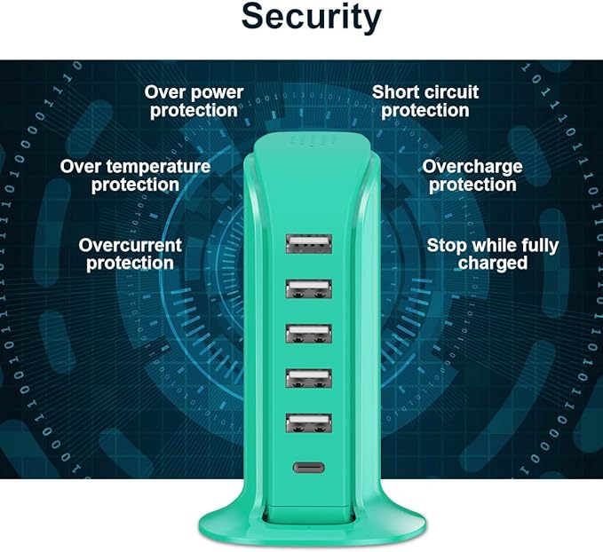 - Charging Tower with 6 protections: 24h Over voltage protection, over current protection, over temperature protection, over charge protection, short circuit protection, disconnect protection.