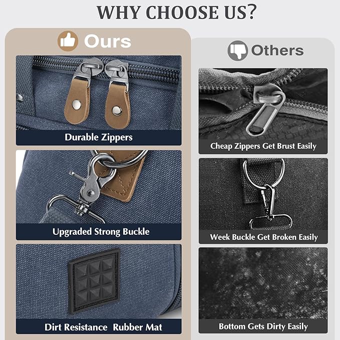 - Multipurpose: Suitable for both men and women, the Canvas Travel Duffel Bag can be used as a weekender bag, overnight bag, short-term travel bag, toiletry kit, camping bag, business bag, gym tote, carry-on luggage, or simply as an emergency bag