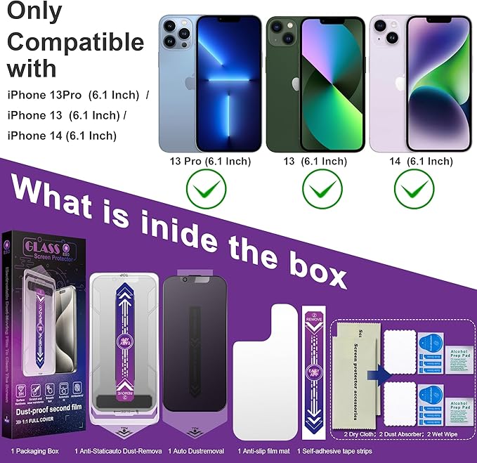 - Auto Dust Removal & Easy Alignment: This iPhone 16e/iPhone 14/iPhone 13 Pro/iPhone 13 screen protector is designed with advanced auto dust removal and self-aligning technology to ensure a flawless,bubble-free installation every time. Simply place the alignment frame on your phone,pull the tab gently,then press and slide to push out any remaining air. The process is quick and hassle-free. For the best results,we recommend watching our step-by-step installation video before getting started
