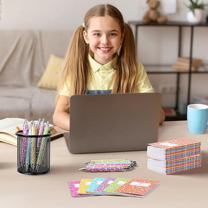 - Premium Writing Experience: each composition notebook features bright white, premium paper,suitable size provides more writing space and works perfectly with pencils, gel pens, ink pens, and highlighters for smooth, bleed-free writing, creating clear notes.Ballpoint Pens with fade-resistant ink, there’s no need to worry about getting ink on your hands or desk, as it won’t fade, bleed, or smudge.