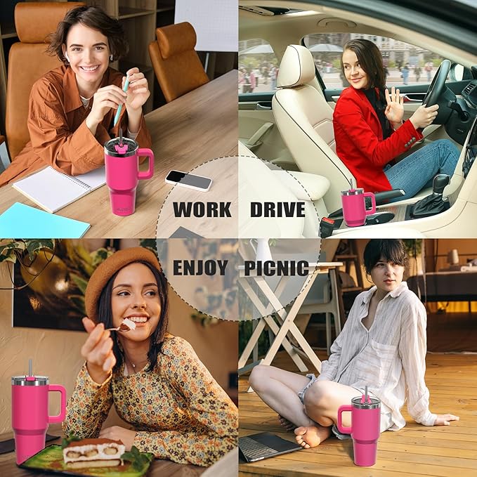 - 【Easy to Carry】The water bottle can be easily placed in the car cup holder, and the one-handle design allows you to easily take out the tumbler and drink and to carry their favorite beverages wherever they go. The wide opening design makes cleaning more convenient and easier