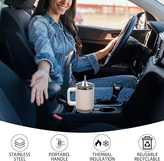 - 【Easy to Carry】The water bottle can be easily placed in the car cup holder, and the one-handle design allows you to easily take out the tumbler and drink and to carry their favorite beverages wherever they go. The wide opening design makes cleaning more convenient and easier