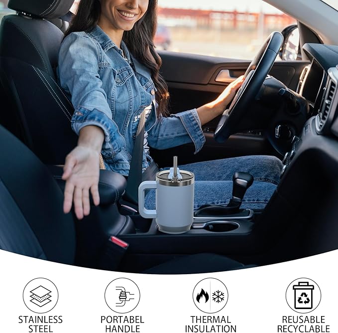 - 【Easy to Carry】The water bottle can be easily placed in the car cup holder, and the one-handle design allows you to easily take out the tumbler and drink and to carry their favorite beverages wherever they go. The wide opening design makes cleaning more convenient and easier