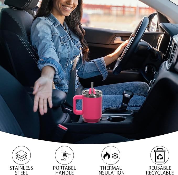 - 【Easy to Carry】The water bottle can be easily placed in the car cup holder, and the one-handle design allows you to easily take out the tumbler and drink and to carry their favorite beverages wherever they go. The wide opening design makes cleaning more convenient and easier
