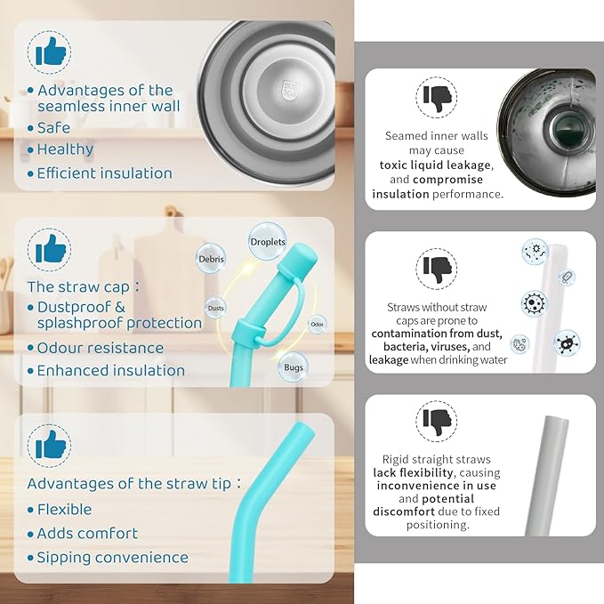 - 【Humanized Features】Includes bendy silicone straw tip, dust-proof straw cover, non-slip protective boot, and ergonomic handle for comfortable grip and easy hydration on the go.