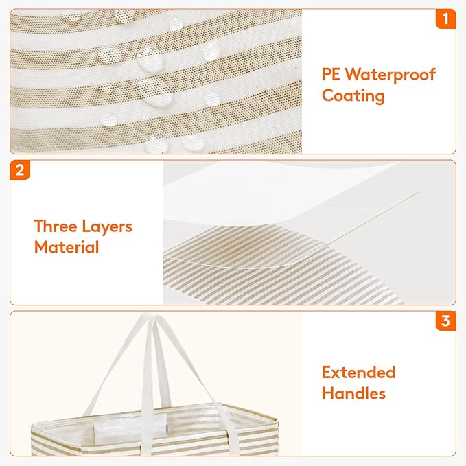 - Waterproof Function: Made from thick polyester with a PE waterproof coating, this grocery tote bag is easy to clean, simply use a wet cloth to wipe off the dirt. Do not clean it in washing machine and dryer, as doing so may damage the leakproof PE coating