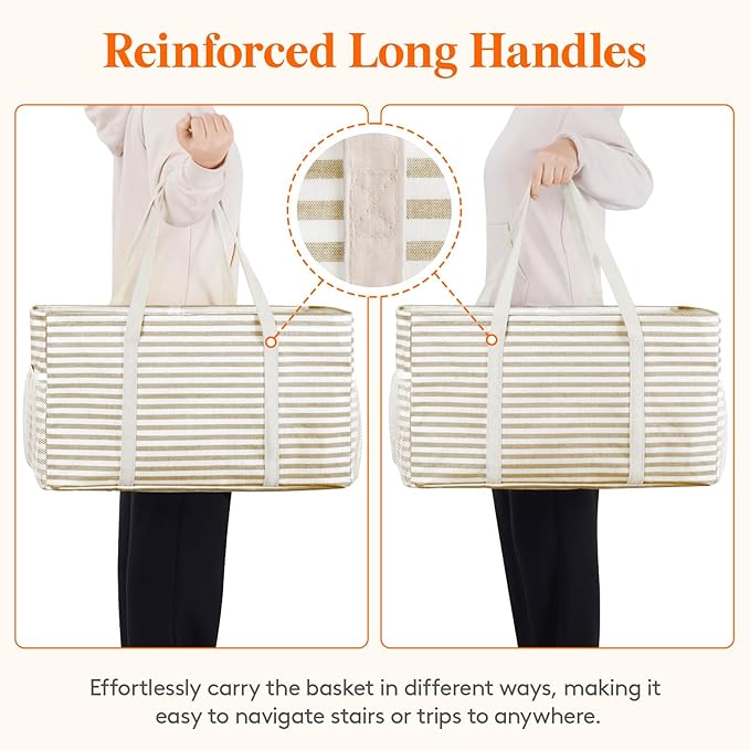 - Multi-Purpose Capability: It serves as a beach basket for your essentials, a spacious laundry basket, and an eco-friendly foldable shopping bag for groceries. Plus, it fits neatly in your car trunk for organized storage
