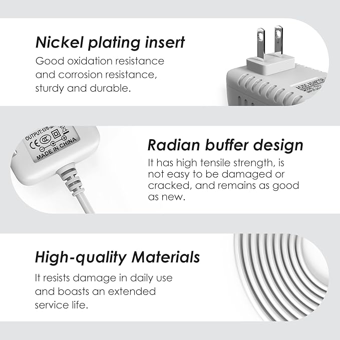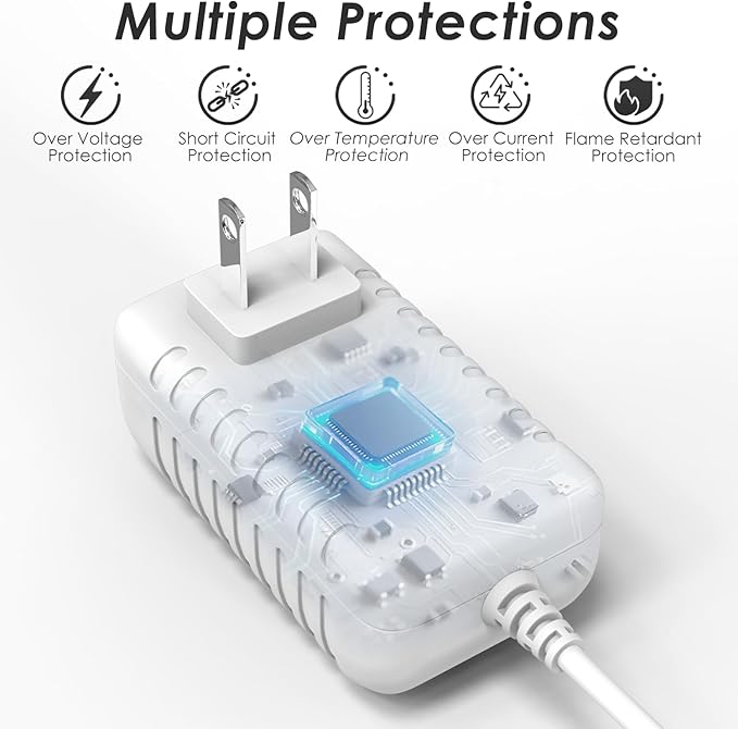- ✅【Charger Specification】: AC/DC adapter, Input: 100-240V, 50/60Hz, Output: 12V 1A. Color: White Cable Length:6 Ft/1.8m, power supply cord provide you with sufficient space length to connect products and equipment.