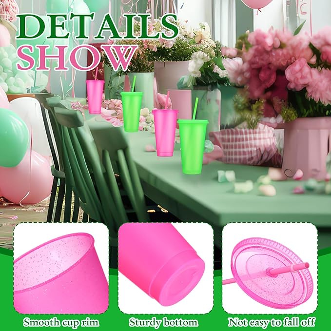 - Reliable Material: the lid and the cup of these pink and green birthday party is made of quality PP material, safe, sturdy and reliable, the cup body designed with a non-slip brush, easy and comfortable to handle