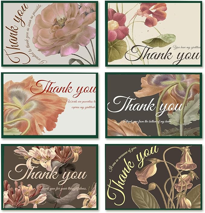 qiqee Palm Flower Thank You Cards 24 Greeting Gift Cards for Handwritten Messages 4x6 Inch Thank You Notes (24pcs Envelopes)
