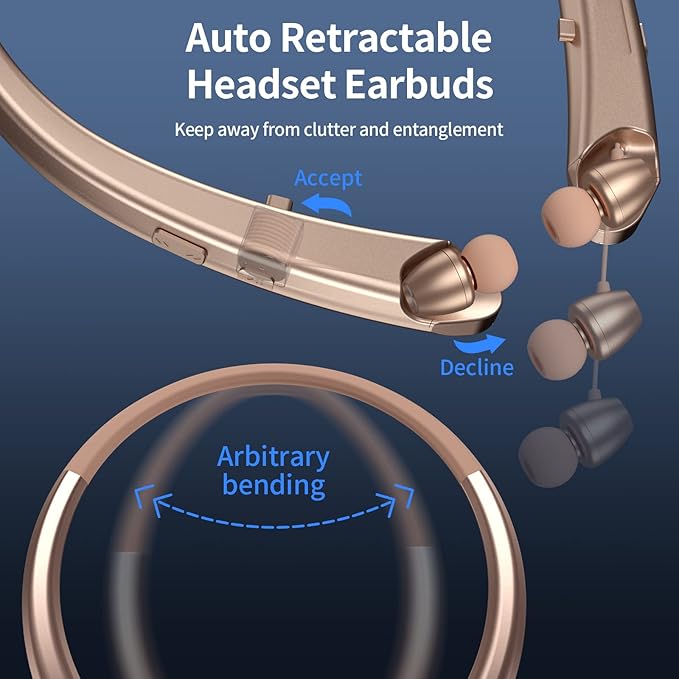 - 【VIBRATION ALERTS & NOISE REDUCTION】 Never miss a call with smart vibration reminders on these retractable headphones. The built-in mic with noise reduction ensures crystal-clear calls, making these bluetooth headphones perfect for busy environments