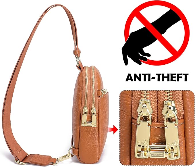 INICAT RFID Blocking Sling Bag Leather Crossbody Bags for Women Fanny Pack Cross Body for Woman Chest Bag for Travel 1.9L