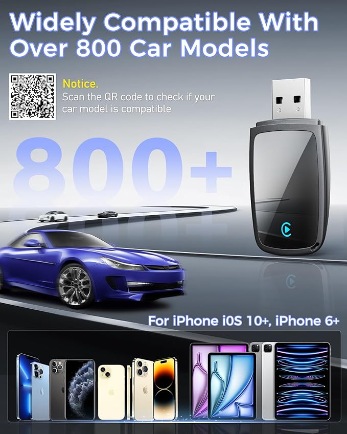 - Note: This product is only compatible with vehicles equipped with factory-wired CarPlay – please check the main image to see if your vehicle is compatible. This product is compatible with iOS 10+ and iPhone 6+. A USB-C adapter is included to ensure compatibility with most vehicle USB ports