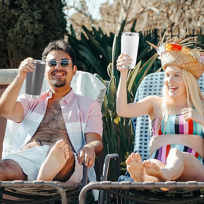 - 【 20OZ HIGH-CAPATICY & MULTIFUNCTIONAL USE 】 - The vacuum tumblers are with 20oz capacity, which is suitable for your daily life. In addition, the bulk tumblers can be used for travel, party, garden, beach. On Christmas, Thanksgiving, Father's Day, and Mother's Day, giving tumblers as a present for your friends and famlies is also a great choise.