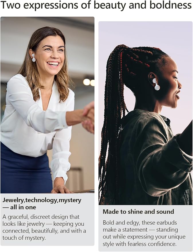 - Jewelry Elements: Jewelpods H01 is made from rare metals with 14K real gold plated , and features over 200 prong setting AAAAA zirconia stones.It sparkles and shines, complementing your jewelry and adding a touch of luxury, making it a standout piece on its own.Breaking away from the traditional plastic feel of earbuds.