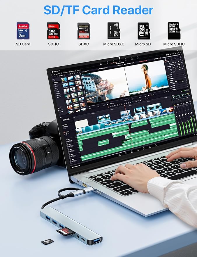 - 【SD / TF card reader】: WIRWTRU usb c hub multiport adapter is compatible with SD and Micro SD cards with capacities up to 2TB and data transfer rates up to 104MB/s which is good news for travel and photography enthusiasts.
