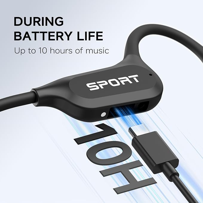 - [Bluetooth 5.4 & 10H Long Playtime] Bone conduction earbuds feature Bluetooth 5.4 technology, providing a fast and seamless wireless connection to any device. Also upgrade battery life allows you to enjoy up to 10 hours of music, audiobooks and podcasts. With Type-C fast charging, which is stable, and universal, the bluetooth headphones provide up to 240 hours of standby time on a single charge.