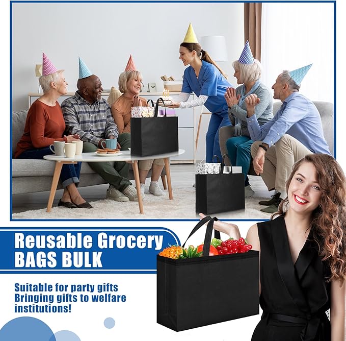 - Spacious and Versatile: with dimensions of x about 16x6x12 Inch/40.5*15*30.5cm, these reusable grocery bags offer ample space for whatever you need to carry, be it groceries, clothes, books, gardening supplies or crafts; Their solid design makes them suitable for both home and commercial usage, companies or events like weddings, birthdays or parties