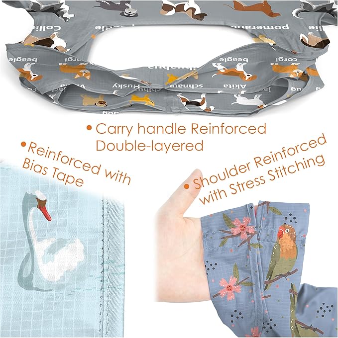 - X-LARGE CAPACITY & Sturdy: These cute reusable grocery bags are very large which can hold up to 50+ pounds of groceries and replaces 2-3 conventional grocery bags. And these foldable reusable grocery bags are reinforced with bias tape which makes them hold heavy loads safely. Long handles of the large reusable shopping bags allow for hand holding or carry on the shoulder for easier carrying, ideal reusable grocery bags bulk for shopping, groceries, travel, storage.