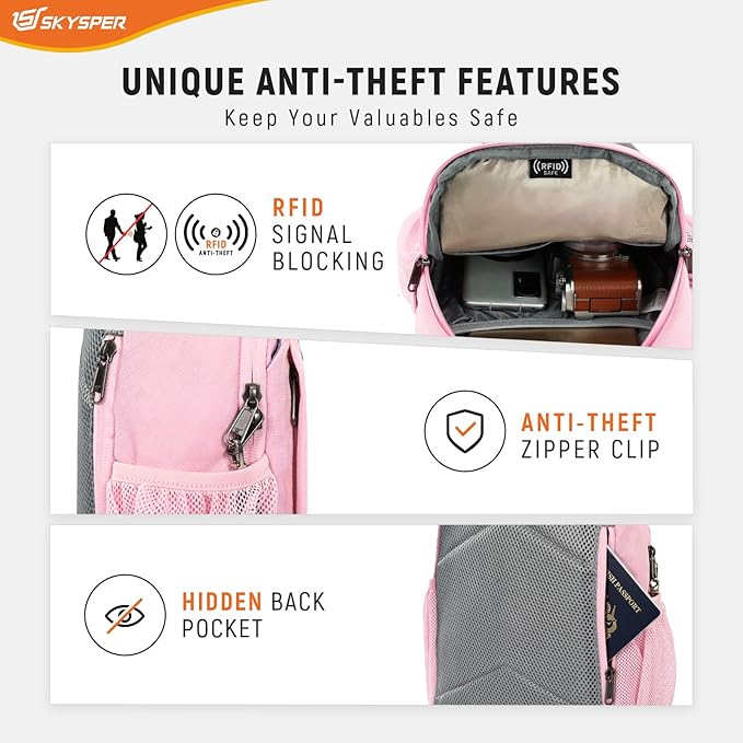 - Anti-Theft Protection: Enjoy peace of mind with our cross body bag's 3 security features. The built-in RFID protection safeguards your cards from scanning, while the anti-theft zipper clip prevents unauthorized access. Additionally, the hidden back pocket ensures security for your valuables