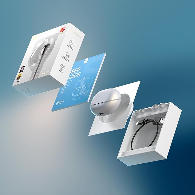 - 【Adaptive AI Hybrid Active Noise Cancelling up to 55dB】Premium noise cancelling powered by adaptive SOUNDPEATS Air5 Pro ANC noise cancelling earbuds. Whether on a noisy plane or the street, enjoy immersive audio, all while the noise-canceling earbuds adapt to ensure maximum comfort and optimal noise reduction.