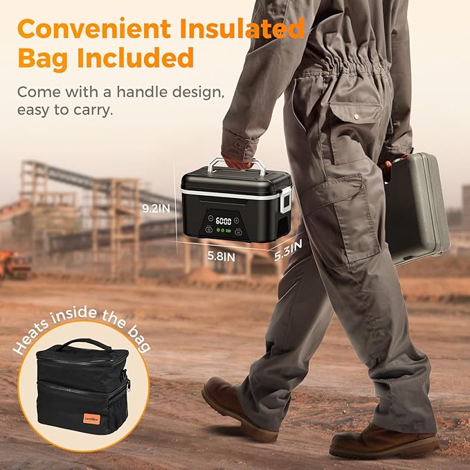- šÆ Cordless Freedom: This portable cordless lunch box for adults is equipped with recharged battery, making it a breeze to enjoy hot meals on the go. This electric lunch box is ideal for whether at work, in the car or outdoor settings, it enables food automatically heating without electrical sockets. Its 13,500mAh battery ensures a single heating cycle and maintains sustained warmth, allowing you to enjoy hot meals anywhere