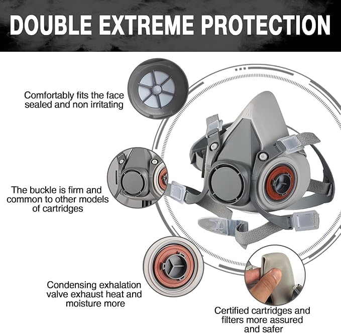 - PACKAGE INCLUDES & HIGH-QUALITY SERVICE: You wil get 2 x Half face respirator, 4 x 6001 cartridge filters and 20x Filters Cotton, You will be quaranteed to get satisfying solution