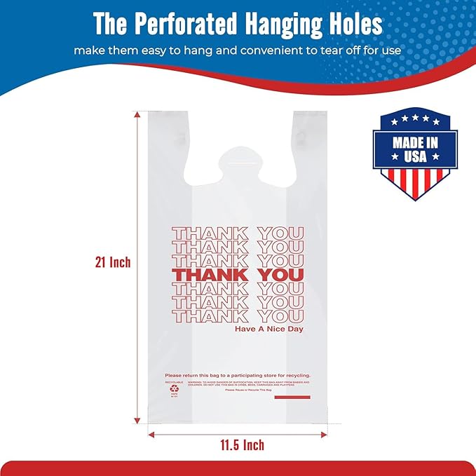 - Durable and Sturdy Material: Our Thank You bags are made from high-density polyethylene with a thickness of 0.47 mil, offering exceptional strength and puncture resistance. Whether for retail goods or food packaging, you can trust these bags to stay intact without tearing