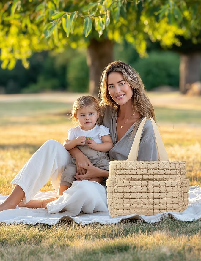 Yarnic Large Puffer Tote Bag for Women, Lightweight 21L Bag with 7 Pockets for School, Travel, Work, Gym Overnight Use