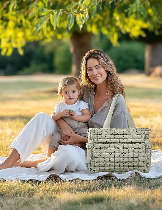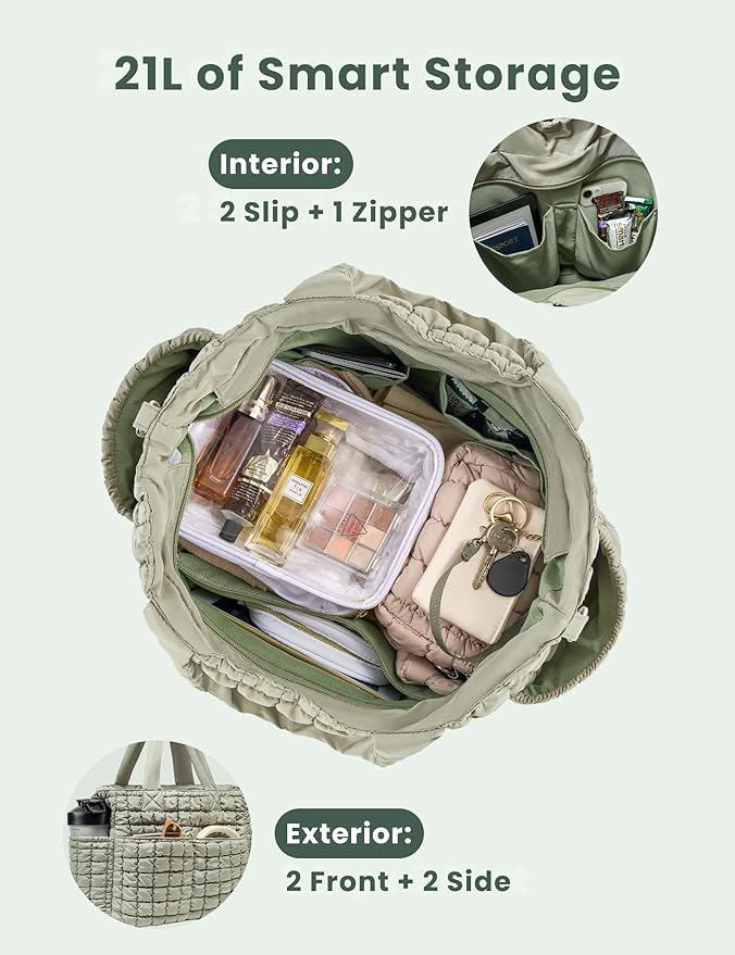 Yarnic Large Puffer Tote Bag for Women, Lightweight 21L Bag with 7 Pockets for School, Travel, Work, Gym Overnight Use