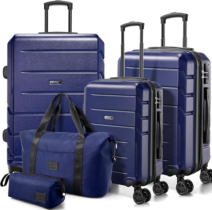 Hoteel Luggage Sets 5 Piece, ABS+PC Hard Shell Expandable Suitcases with Wheels, TSA Aproved Lock and Carry on Bags, Travel Suit Case Set for Men and Women, (5-Piece, Blue)