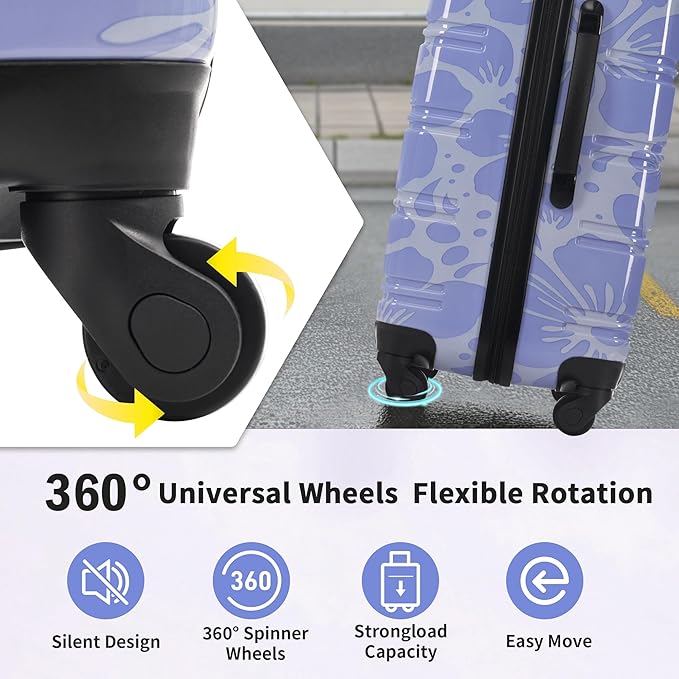 - 3 Piece Set:The set includes 20 inches, 24 inches and 28 inches. One set just satisfies all your different travelling needs.The printed suitcase is very summery and will turn you into a fashion expert in seconds.