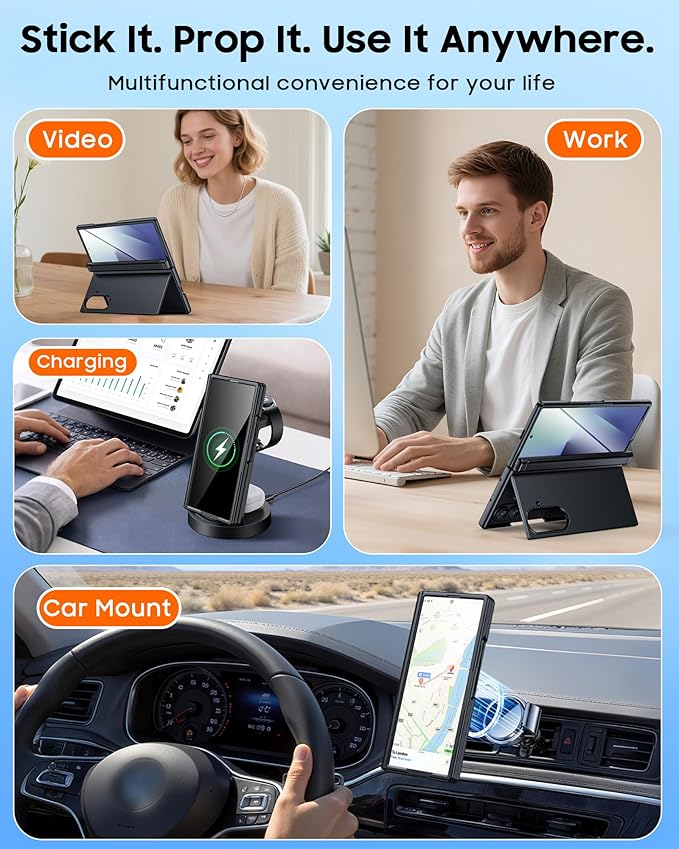 - 【Strong Magnetic & Wireless Charging】The Z Fold 7 case is compatible with different magnetic accessories and has strong magnets built in, allowing it to withstand 18N gravity.The magnetic suction power is up to 2000gf, no need to worry about your magnetic power bank, wallet suddenly dropping during use. Suitable for a variety of scenarios, For example, driving, office, movie party, very portable. It supports wireless charging, allowing for portable high-speed charging without removing the phone case.
