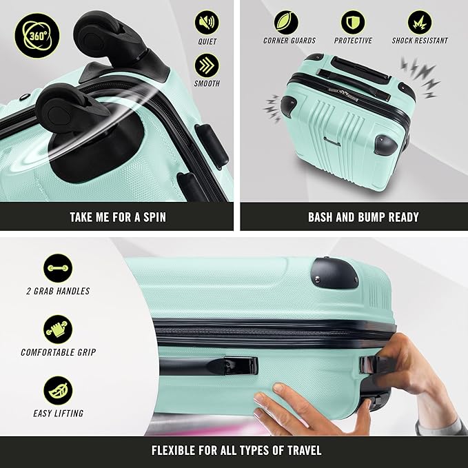 Kenneth Cole REACTION Out of Bounds Lightweight Hardshell 4-Wheel Spinner Luggage, Mint Blue, 28-Inch Carry On
