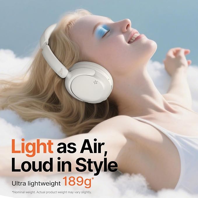 - Featherlight Comfort, Just 189g*: Weighing only 189g*, Hyper GO bluetooth headphones are 20% lighter than typical ANC models. Designed with an adjustable headband and ultra-soft ear cushions, they offer a customized fit and all-day comfort — perfect for work, study, or long flights. (*Nominal weight. Actual product weight may vary slightly.)