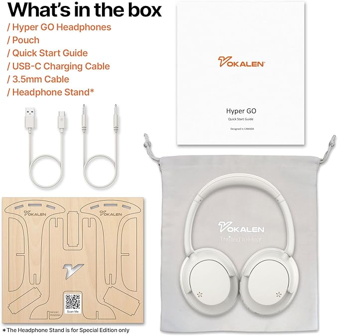 - Vokalen Connect App Customization: Personalize your audio experience with the Vokalen Connect App. Adjustable EQ and ANC levels for rich, customized sound in your wireless Bluetooth headphones.